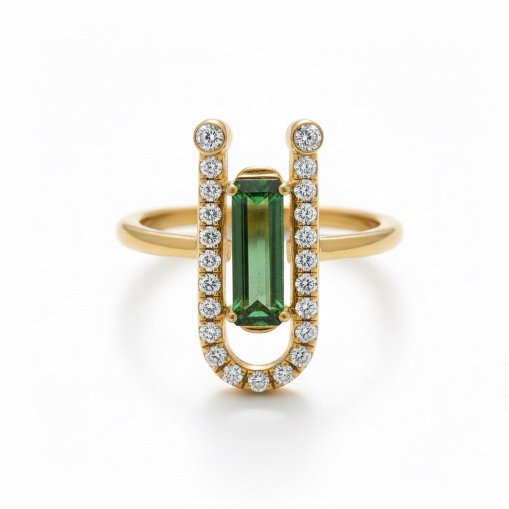 Der Aurora Turmalin Ring vereint moderne Eleganz mit zeitloser Schönheit. In seiner klaren, minimalistischen Form erzählt er von stiller Anmut und subtiler Stärke. Ein leuchtend grüner Turmalin steht im Mittelpunkt, begleitet vom dezenten Glanz feinster Diamanten, die dem Schmuckstück eine außergewöhnliche, ruhige Präsenz verleihen. Jeder Ring erzählt seine eigene Geschichte – von Augenblicken der Klarheit, Momenten des Innehaltens und einem Gefühl eleganter Einzigartigkeit, das die Trägerin stilvoll begleitet.